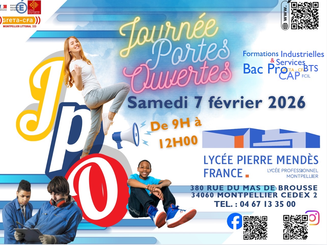 Le Lycée professionnel Pierre Mendès France de Montpellier a le plaisir de vous inviter à sa Journée Portes Ouvertes, qui se tiendra le :