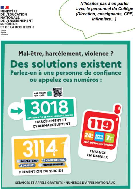 Nous vous invitons à échanger avec l’équipe éducative ou les membres de l’équipe ressource si vous avez des questions, des inquiétudes ou si vous souhaitez signaler une situation. La santé mentale des élèves est une priorité : ensemble, soyons attentifs, bienveillants et réactifs.